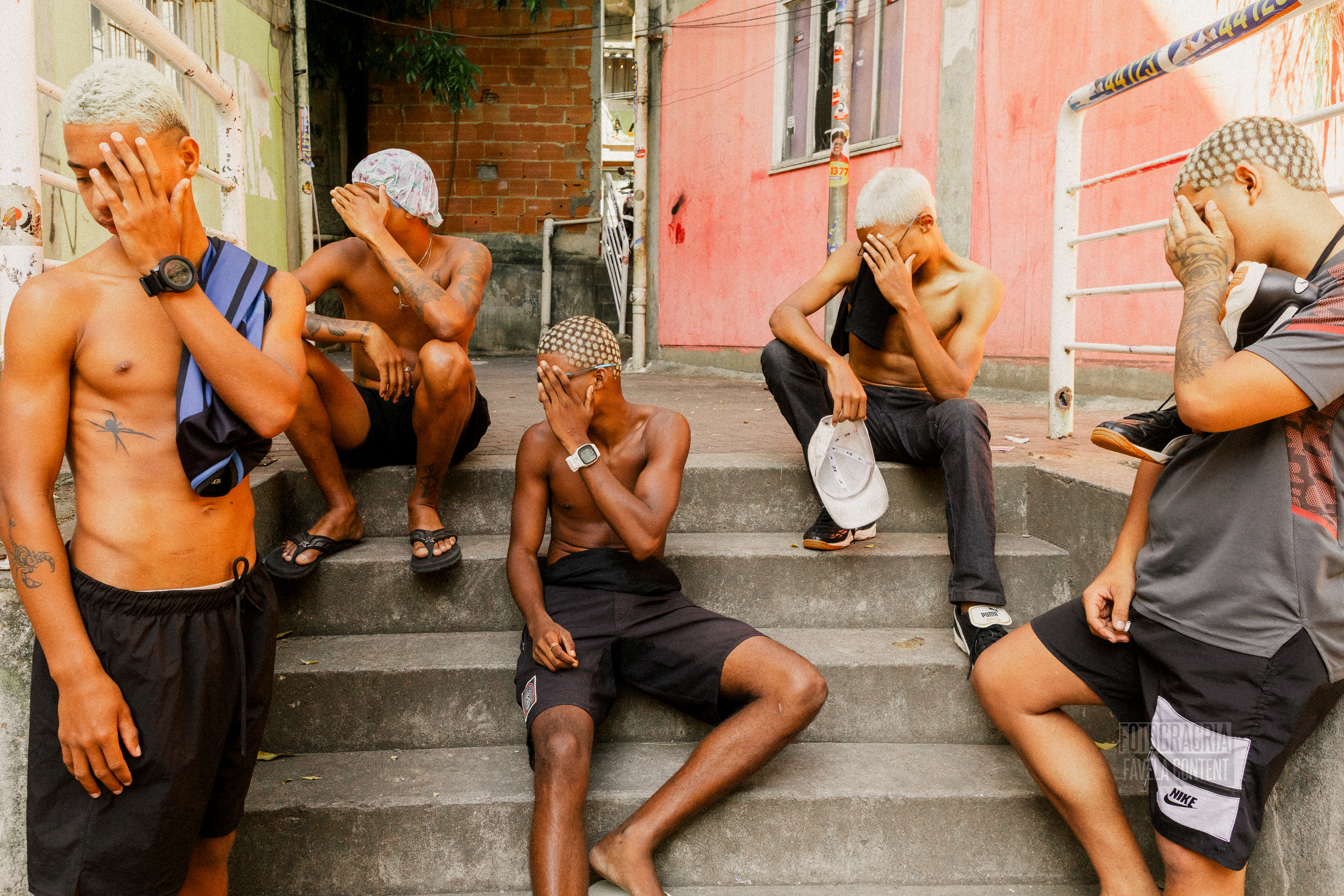 Luther descolore as sobrancelhas com os crias na Vila Verde na ação de Maxwell Alexandre